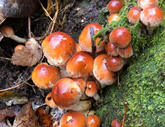 10月〜11月、広葉樹の枯れ木に多数重なって発生する。傘の色は黄土色で緑や紫色を帯びることがある。
